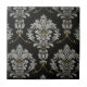 Ein luxuriöses und verziertes Damast-Muster mit aufwändigen Blumenmotiven in Weiß und Gold auf schwarzem Hintergrund. Das Design ist klassisch und raffiniert, ästhetisch, wie man es in Vintagen Tapeten, Textilien und hochwertigen Dekorationen findet.