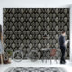 Ein luxuriöses und verziertes Damast-Muster mit aufwändigen Blumenmotiven in Weiß und Gold auf schwarzem Hintergrund. Das Design ist klassisch und raffiniert, ästhetisch, wie man es in Vintagen Tapeten, Textilien und hochwertigen Dekorationen findet.