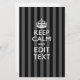 Personalisierte schwarze Streifen Dekoration Halte Ruhe und Carry On Stil Sprichwort auf ein individuelles Geschenk. Humorvoll oder skurril versuchen Sie Ihre kreativen Worte auf den zwei bearbeitbaren Textzeilen. Vergessen Sie nicht, HAUPTSTÄDTE für beste Ergebnisse zu verwenden. Verwenden Sie den Link "Diesen Designer Gefragt", um uns mit Ihren speziellen Designanfragen oder für Hilfe bei Ihren Anpassungsbedürfnissen zu kontaktieren.