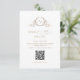 Elegante Online-Hochzeitszimmerkarte mit QR-Code und einem exquisiten handgezeichnet Monogramm, das die Initialen des Paares in Kalligrafie zeigt. Schöner Rücken in Beige- und Cremetöne, Aquarellwäsche. Teil unserer Kollektion "Beige Creme Watercolor Botanical Monogram Wedding" mit einer Vielzahl von Koordinierungsprodukten.