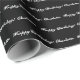 Elegantes, benutzerdefiniertes, schwarz-weißes Skriptnamen Textmuster Geburtstag Wrapping Paper Happy Birthday Name vollständig anpassbarer Text