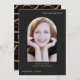 Diese elegante Schwarz-Gold-Foto-Abschluss-Anzeigenkarte verfügt über einen schönen geometrischen Foto-Bogen auf der Vorderseite und stilvolle Glückwunsch-Text auf der Rückseite in großem Stil.