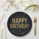 Eleganter Black and Gold Glitzer Happy Birthday Pappteller