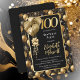 Eleganter Black Gold Glitzer Ballon 100. Geburtsta Einladung