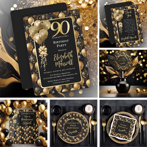 Elegant Black Gold Balloons 90th Birthday Party Designt von Tammy Yargates