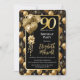 Eleganter Black Gold Glitzer Balloons 90. Geburtst Einladung