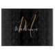 Elegantes Black Gold Monogram Modernes Script Name Cutting Board. Personalisieren Sie diese schicke, mit Monogramm Schneideplatte in Schwarz und Gold mit Ihrem Initial und Namen in klassischer Schriftzypografie. Perfekte Geschenkidee für die Wohngestaltung.