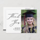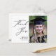 Eleganter Black Script Minimalistisch Foto Abschluss Vielen Dank Postcard. Gib Wow 'Danke' an deine Familie und Freunde mit dieser schönen Danksagkarte. Alle Texte sind so vorbereitet, dass Sie sie einfach und schnell mit Ihren eigenen Worten personalisieren können.