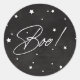 Eleganter Black+White Scattered Stars Boo! Hallowe Runder Aufkleber