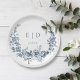 Eleganter blau eingeprägter Blumenreath mit Monogr Pappteller