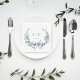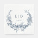 Eleganter blau eingeprägter Blumenreath mit Monogr Serviette