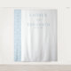 Diese elegante Hochzeitskulisse verfügt über ein minimalistisches Design mit einer sauberen, anspruchsvollen Ästhetik. Die linke Seite zeigt ein vertikales Band mit einem hellblauen Damastmuster, das eine subtile Textur vor dem knackig weißen Hintergrund hinzufügt. Zentriert auf der rechten Seite sind anpassbare Namen und Datum in einer klassischen Serifenschriftart, in einem sanften Grau-Blau gehalten, für einen harmonischen Look. Die zurückhaltende Farbpalette aus Weiß und Blau schafft ein ruhiges und zeitloses Gefühl, perfekt für formelle Feiern. Ideal für Hochzeiten, verbindet dieses Design traditionelle Typografie mit zeitgenössischem Minimalismus, um Eleganz und Ruhe zu vermitteln.