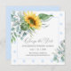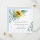 Dieses Design besticht durch eine schicke, elegante Aquarellsonnenblume, blaue Polka-Punkte, Eukalyptus-Blüten und eine individuelle Typografie.