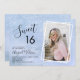 Moderner Kick Sweet 16 Geburtstagsfeier Einladung mit ombre blauen Imitaten Glitzer Hintergrund und eleganter Kalligrafie Schriftart. Laden Sie Ihr Lieblings-Foto hoch.