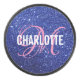 Moderner mit Monogramm Puck mit einem weißen Namen und einem rosa Script Monogramm auf blauem Glitzer Hintergrund. Personalisieren Sie mit Name und Initial.
