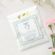 Elegante Partygeschenktüten für Ihre Brause Dusche mit grandmillenial-inspirierten vintage-grünen Scallop- und blauen floralen Wasserfarbrahmen, einem zarten blauen Coquette-Schleifen-Wasserfarbe, "ein süßes Dankeschön" in eleganter blauer Kalligrafieschrift dargestellt und dem Namen der Braut und dem Datum der Dusche in klassischer Serif-Typografie.