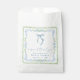 Elegante Partytüten für Ihren Braut-Shower mit großartig-millenial-inspirierten vintage-grünen Muschel- und blauen floralen Aquarellrahmen, einem zarten blauen Coquette-Schleifen-Aquarell, "ein süßes Dankeschön" in eleganter blauer Kalligrafieschrift und dem Namen der Braut und dem Datum des Showers in klassischer Serif-Typografie.