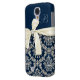 Eleganter blauer silberner Damast-Diamant-Bogen Case-Mate Samsung Galaxy Hülle