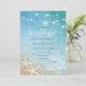 Entwerfen Sie Ihre eigenen eleganten Hochzeitsfeiern am Strand, die für Ihren besonderen Tag im Sand personalisiert werden können. Das weiche blaue und aquamarine, rustikale Aquarellwerk von Raphaela Wilson besticht durch eine tropische Mischung aus Surffarben am Meer und einen subtilen, Vintagen Glitzer, der einen strahlenden Sandeffekt garantiert. An der Vorderseite dieser tropischen Hochzeitseinladungen liegt ein Ozean mit sanften, schäumenden Wellen, romantischen Lichtern, goldenem Sand und 2 weißen Seestern. Auf der Rückseite sind die Blätter/Grünflächen der Palmen, die Blume der Plumeria, die Beleuchtung im Party und die Fotos sowie die Veranstaltungsdetails optional.. Wenn Sie einen minimalistischen Stil bevorzugen, können Sie auch die Rückseite leer verlassen und einen anderen Farbhintergrund einführen, der perfekt zu Ihren Strandmotiven passt. Egal ob Sie in Hawaii, Florida oder einem anderen tropischen Ziel heiraten, diese einmaligen Hochzeitseinladungen mit Seestern können eine elegante Touch in Ihre Küstenstationen und Ankündigungen bringen. Egal, ob Sie Geburtstagsfeier am Strand, tropisches Brautparty, Jubiläum, Quinceanera, etc. feiern, es ist einfach, den stilvollen, modernen und Skript-Kalligraphie-Typografie-Text auf jeden besondere Anlass zu personalisieren. Viel Spaß! Kategorie: Moderne DIY Template Hochzeitseinladungen, personalisierte rustikale Hochzeitseinladungen und individuelle nautische Hochzeitseinladungen. Beliebte klassische Farben für Wassersportaktivitäten: türkisfarbenes Meerwasserblau, aquamarines, dunkles/helles Grün, Aqua, Weiß, Bräune und Gold.