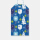 Elegant 💙 blau und weiß 🤍 Weihnachten 🎄 pickleball Geschenketiketten. Blaue und weiße Pickleball-Paddeln, weiße Weihnachtsbäume mit pickleball Weihnachtsbaumbaum, Schneeflocken auf trendigem, dunkelblauen Hintergrund.