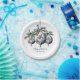 Elegantes, blaues Weihnachtsreitdesign mit verziertem Blau-Weiß-Weihnachtsbaum, Ziergegenständen und einem weißen Pferd. Ideal für Pferdefreunde, Pferderennfahrer, Pferdetrainer, Pferdeställe, Ränge, Pferdeställe.