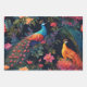 elegante, farbenfrohe Blaue und goldene Pfauen in einem wunderschönen Blumengarten auf schwarzer KUNST, GESCHAFFEN VON MINX267