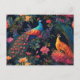elegante, farbenfrohe Blaue und goldene Pfauen in einem wunderschönen Blumengarten auf schwarzer KUNST, GESCHAFFEN VON MINX267