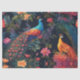 elegante, farbenfrohe Blaue und goldene Pfauen in einem wunderschönen Blumengarten auf schwarzer KUNST, GESCHAFFEN VON MINX267