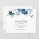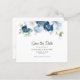 Elegante florale Aquarellfarben staubige blaue, weiße und blumengeschmückte Blumenstrauß-Hochzeit speichern das Datum mit QR-Code-Karte. Die Karte verfügt über ein Skript "Save the Date", das in einen Schriftart Ihrer Wahl geändert werden kann, der hier verfügbar ist, wenn Sie auf "Personalisieren" klicken. Fügen Sie Ihre Hochzeitswebsite und den QR-Code auf der Rückseite hinzu, damit Ihre Gäste mit Ihren Vorstellungen auf dem Laufenden behalten werden können