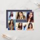 Verkünden Sie Ihren Absolventen stilvoll, indem Sie ihre Lieblings-Senior-Fotos auf diesem Foto Collage Card Design präsentieren. Personalisieren Sie die Formulierung auf der Rückseite der Karte, um Familie und Freunde zu einer Abschlussfeier einladen, um den Anlass zu feiern. Die Mitternachtsblau / lila Hintergrundfarbe kann an die Farben der Schule oder des Fotos angepasst werden.