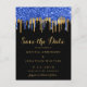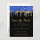 Eleganter Blue Gold Glitzer Tropfen Save the Date Einladungspostkarte