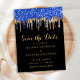 Eleganter Blue Gold Glitzer Tropfen Save the Date Postkarte
