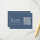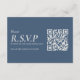 Sammeln Sie mühelos die Antworten der Gäste mit diesem QR Code uAwg Insert, das in einer zeitlosen blau-weiß-grauen Palette entworfen wurde. Das elegante r.s.v.p Gehäuse bietet modernen digitalen Hochzeitskomfort mit einem speziellen QR-Code für einfache, sichere Antworten. Schlichte, minimalistische Details und schicke Serifentexte schaffen ein schlichtes und dennoch raffiniertes Aussehen, das zeitgenössische und klassische Stilelemente nahtlos kombiniert. Das elegante Design der Karte eignet sich ideal für Paare, die eine elegante Antwort suchen. Das elegante Layout eignet sich sowohl für Feierlichkeiten als auch für moderne Feiern und macht sie zu einem unverzichtbaren Bestandteil jeder stilvollen, zeitgenössischen Hochzeitssuite.