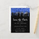 Eleganter Blue Silver Glitzer Tropfen Save the Dat Postkarte