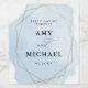 Eleganter Blue Watercolor Splash, Gold Geo Frame Weinetikett