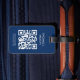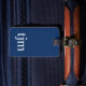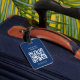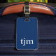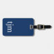 Elegantes, vollständig anpassbares Gepäckanhänger-Design mit blauem Hintergrund, weißes, feines Monogramm. Fügen Sie Ihren QR-Code mit Ihren Kontaktdaten hinzu. Sofort zugängliche Kontaktdaten: Ihre Tasche kennt immer den Weg zurück:)