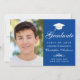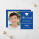 Eleganter Blue White Script Cap Foto Abschluss Ankündigung