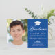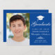 Senden Sie Ihrer Familie und Ihren Freunden eine einzigartige personalisierte Foto Abschluss-Karte mit Ihrem individuellen Foto auf den links und auf der rechten Seite eine weiße Graduate-Kappe mit dem Wort Graduate, Klasse/Jahr, Name und andere Zeremonie Details in formaler weißer Schrift Kalligrafie, um auf einem königsblauen Hintergrund personalisieren. Entworfen von ©Susan Coffey.