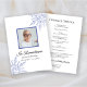 Erinnern Sie sich an Ihre Lieben und feiern Sie ihr Leben mit dem hübschen Elegant Blue Winter Snowflakes Beerdigung Service Program. Diese elegante, maßgeschneiderte Winterdenkmal-Service-Zeitleiste bietet faszinierende blaue Schneeflocken an den Ecken mit weißem Hintergrund. Passen Sie es mit einem Bild der Verstorbenen, persönlichen Details und der Reihenfolge der Zeremonie ihrer Dezember, Januar oder Februar Feier des Lebens Kirchendienst.