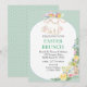 Elegante florale Minze Grüne Osterfeier Einladung. Schicken Sie Ihren Brunch Gästen diese schöne Einladung mit einem sonnigen Hase in einem Osterbonnet voller Blume. Schöne Pastellfarben perfekt für den Frühling.