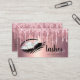 Dieses wunderschöne Design der Visitenkarten-Blitze & Bräunen bietet Imitate Kupfer & Rosa Rosa Gold tropfen Glitzer Metallic Textur, Minze florale Wimpern und eleganten kalligraphischen Schriftart.