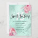 Schöne Sweet 16 Geburtstagsfeier Einladung mit Imitaten Minzgrün Marmor Glitzer Textur, Rose Gold & Silber Rose und elegante Kalligraphie Schriftart.