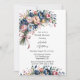 Dieses exquisite Blumenkranz-Design besticht durch eine atemberaubende Anordnung von handbemalten Pfannkuchen, Rose und zartem Blattwerk in reichen Marinetönen, Rost, Lavendel und Creme. Es ist perfekt für die Gestaltung von Einladungen, Beschilderungen oder Schreibwaren geeignet und fügt jedem Feiern eine Touch von Romantik und Raffinesse hinzu. Ideal für Hochzeiten im Frühling, Sommer oder im Garten.