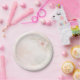 Verleihen Sie Ihrem Partytisch mit diesen "Baby in Bloom" Schmetterlingsplatten, die perfekt auf Ihr gartenthemes Baby-Shower abgestimmt sind, einen besonderen Touch. Jede Platte zeigt einen zarten rosa Wasserfarbenschmetterling, akzentuiert von weicher botanischer Grünpflanze auf einem träumerischen Pastellwasch. Diese künstlerischen Partysachen sind eine schöne Wahl, um die Ankunft eines neuen Erdenbürgers oder einen wunderlichen ersten Geburtstag zu feiern.
