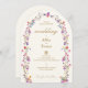 Feiern Sie Ihren besonderen Tag mit dieser eleganten Hochzeitseinladung mit einem zarten Blumenbogen-Design. Das klare und einfache Design unterstreicht eine romantische Anordnung von Wildblumen, die Ihre Hochzeitsdetails in zeitloser Goldtypografie abstecken. Ideal für moderne und romantische Hochzeiten, fügt diese Einladung eine Touch von Eleganz und Charme, an die sich Ihre Gäste erinnern werden. Ideal für Gartenhochzeiten, rustikale Feiern und elegante Empfänge. Features farbenfrohe handgezeichnet Blumenakzente in einem Gewölberahmen Individualisierbarer Text für Namen, Datum, Veranstaltungsort und Empfang Details Ein wunderschöner Sake für Ihre Lieben Set für Ihren unvergesslichen Tag mit dieser stilvollen und zeitlosen Hochzeitseinladung.
