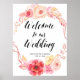Eleganter Blumenaufdruck mit schönem Aquarellkranz und individualisierbarem Text auf weißem Hintergrund - Sie können Braut- und Bräutigam-Namen und Hochzeitstag hinzufügen. Die Abmessungen des Schildes (Poster) betragen 30 cm x 24 Zoll.