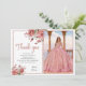 Eleganter Blush Pink Floral Quinceañera Geburtstag Dankeskarte