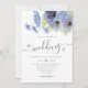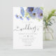 Feiern Sie Ihre Liebesgeschichte mit einer wahrhaft einzigartigen und zauberhaften blauen floralen Hochzeitseinladung, die elegant für eine Frühlings- oder Sommerfeier gestaltet wurde. Dieses raffinierte Design kombiniert elegante, verspielte Schrift mit romantischen Aquarell-Wildblumen, wodurch eine anspruchsvolle und dennoch freudige saisonale Ästhetik entsteht.