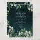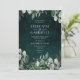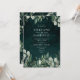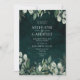 Die wilden Wälder sind ein wunderschönes, grünes Design, mit rustikalen Blätter in Aquarelltönen vor dunklem Jägergrün. Dieses botanische Thema für eine elegante rustikale Hochzeit, Sommerhochzeit oder Waldthema erinnert an Romantik. Das Design verfügt über ein einfaches, elegantes Drehbuch, umgeben von botanischen Wasserfarben-Blätter mit dunkelgrünem Hintergrund.