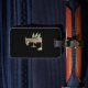 Eleganter schwarzer Schlüsselanhänger mit einem goldenen botanischen Monogramm in der Mitte.